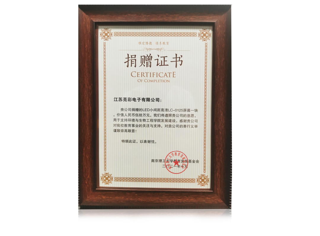 除了此次向母校慷慨捐贈,江蘇亮彩在2021年就向南京理工大學另一學院捐贈LED顯示屏一塊。章總表示,有責任也有義務用公益來表達自己的感恩,支持并助力母校的人才培養、校園建設。