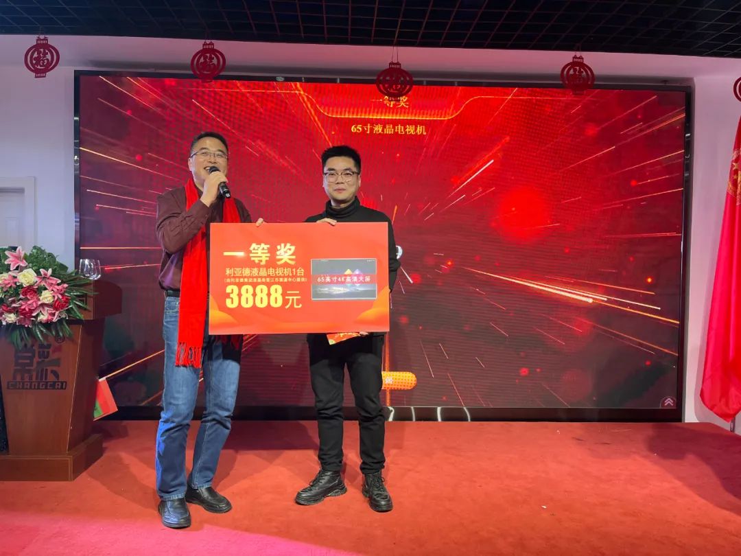 ▲曹立新先生 中國LED工程商聯(lián)盟秘書長(高級(jí)工程師) 曹秘書長雖未親臨年會(huì)現(xiàn)場(chǎng),他給我們帶來了新年賀詞: 展望未來,我們滿懷期待!值此辭舊迎新之際,我謹(jǐn)代表中國LED工程商聯(lián)盟和全國精品巡展組委會(huì)向大家致以最誠摯的祝福! 在新的一年里,希望江蘇亮彩致力于為客戶提供更好的產(chǎn)品和服務(wù),不斷提升自身的綜合實(shí)力,把更多的創(chuàng)新產(chǎn)品推向市場(chǎng),為更多的客戶提供更優(yōu)質(zhì)的服務(wù),為合作伙伴提供更完善的支持,讓我們一起攜手共進(jìn),共創(chuàng)輝煌! 酒興高至,此時(shí)情意正濃,讓我們?cè)谶@載歌載笑的氛圍中,正式拉開今日宴會(huì)的序幕。 一等獎(jiǎng)得主 年會(huì)怎么能少了大家最最最期待的抽獎(jiǎng)環(huán)節(jié)呢? 我們的獎(jiǎng)項(xiàng)設(shè)置如下: 新年好運(yùn)來,把好運(yùn)延續(xù),希望2023年大家都能“兔”來運(yùn)轉(zhuǎn),鴻運(yùn)當(dāng)頭。 相聚的時(shí)光雖然短暫,但這份感動(dòng)和美好,卻將永遠(yuǎn)留存在我們心中。就讓我們相約在未來的前行路上,一路攀高,彼此照耀。也讓我們相約明年再會(huì)。 不負(fù)過去,不懼未來。 以奮斗之心,迎接2023!